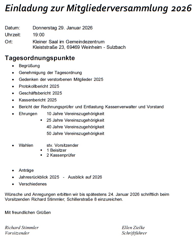 Nächste Termine: 29.01.2026: Mitgliederversammlung